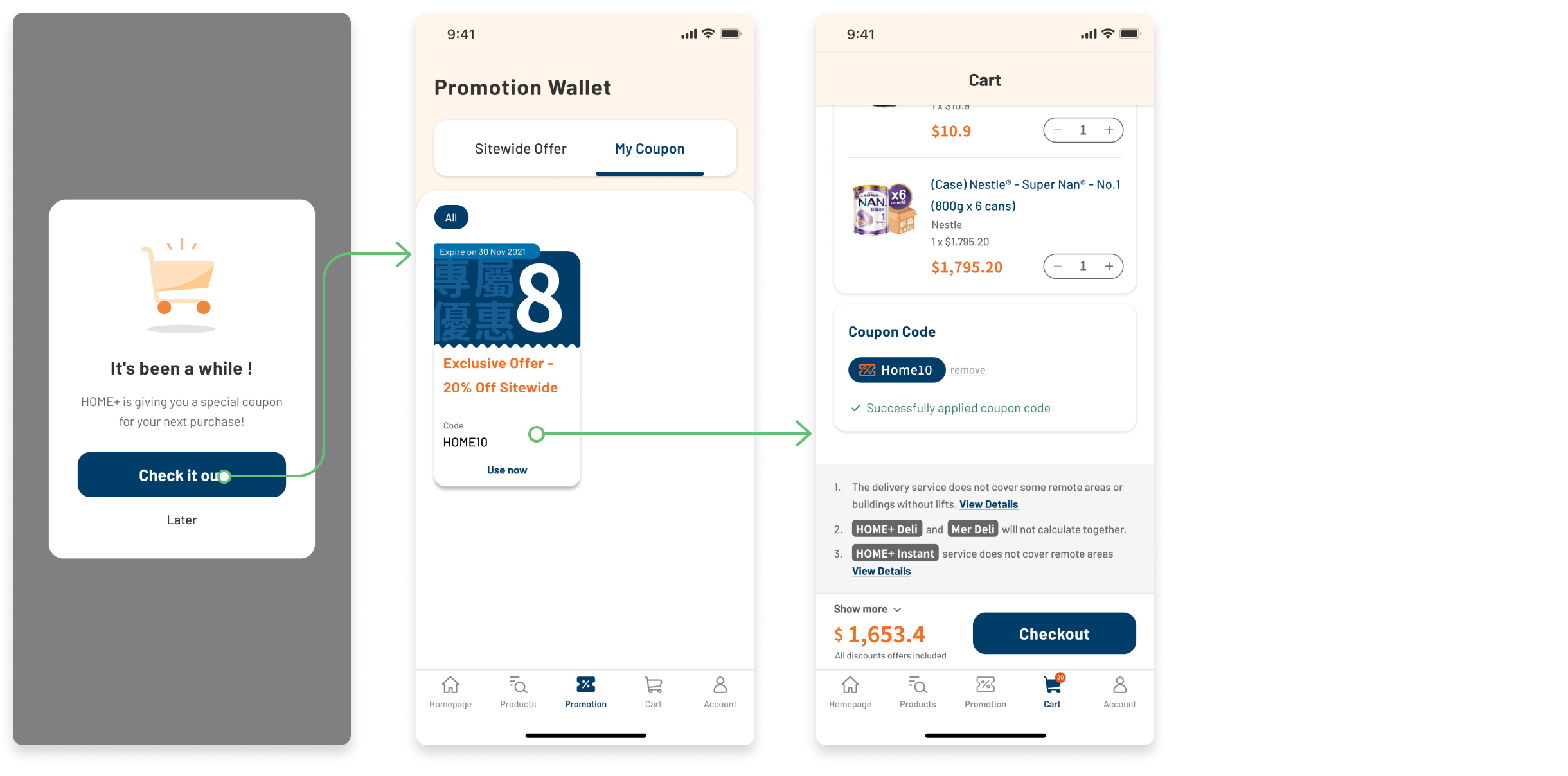 Users can check the details of the promotion or access to the corresponding product listing page from the promotion wallet